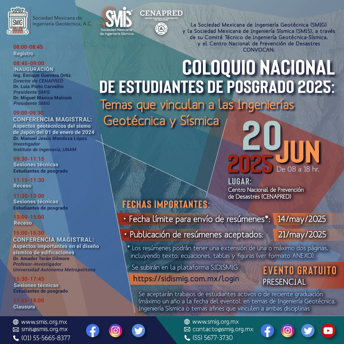 Coloquio Nacional De Estudiantes De Posgrado 2025: Temas Que Vinculan A Las Ingenierías Geotécnica Y Sísmica | Ver reseña | 20 de Junio | CENAPRED | ----- |
