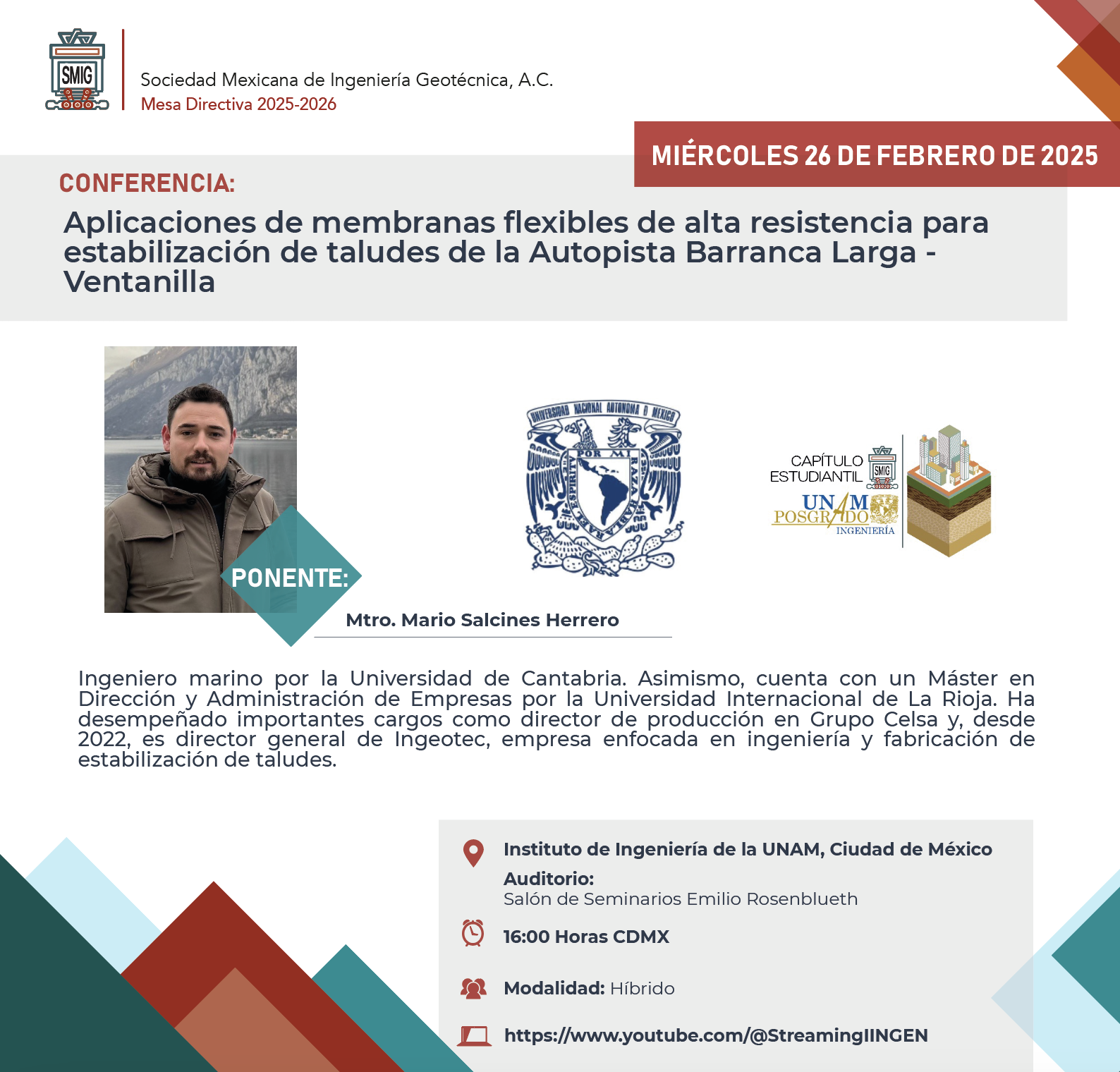 Primera Jornada Técnica de Jóvenes Geotécnicos 2026 | ----- | 08 de Abril | Zoom | ----- |