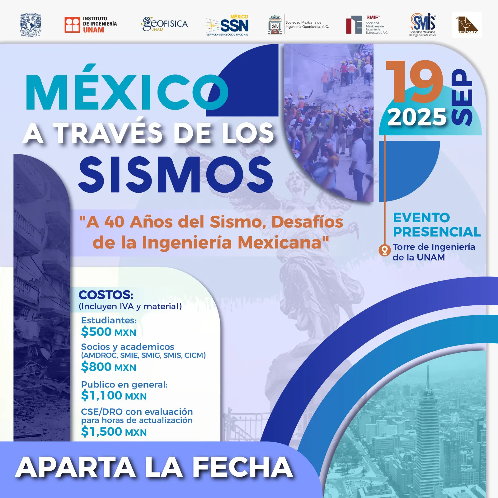 México a través de los sismos | Ver reseña | 19 de Septiembre | Torre de Ingeniería, UNAM | ----- |
